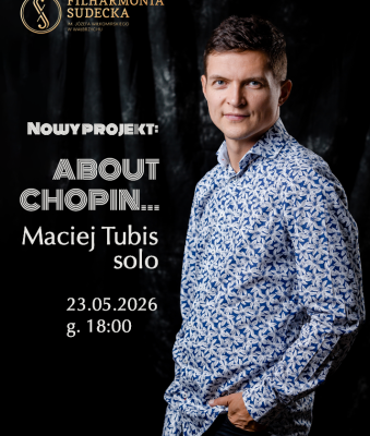Jeśli chcesz posłuchać muzyki fortepianowej, usłyszeć fragmenty wspaniałej muzyki Fryderyka Chopina, ale jednocześnie przeżyć coś nowego, improwizowanego i oryginalnego, to muzyka Macieja Tubisa zapewni łącznik między światem muzyki klasycznej, a muzyki filmowej? improwizowanej? neoklasycznej? – przyjdź i sam oceń i daj się zaskoczyć. W tym projekcie wracam do Chopina – nie po to, by go interpretować na nowo, lecz by wsłuchać się w to, co w jego muzyce wciąż porusza, niepokoi i koi. Improwizacja splata się tu z formą, a fortepian staje się przestrzenią dialogu między przeszłością a teraźniejszością. „About Chopin” to osobista podróż – intymna, szczera i otwarta.